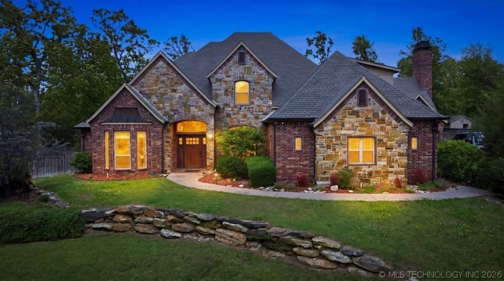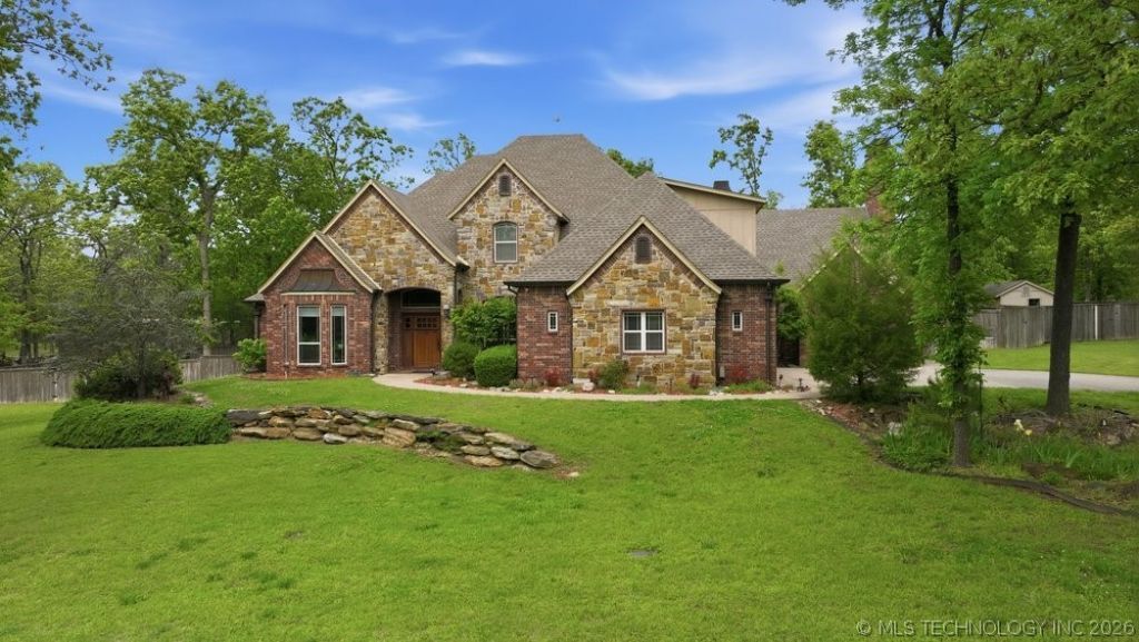 CLAREMORE CAN BRAG! Luxury nestled in Gated Timberlake Addition near Claremore Lake, Bike park & trails. Beautiful and versatile plan, long list of updates. Lush wooded Lot will easily hold a pool. Outdoor living w covered patio, fire pit, sprinkler and security. Energy efficient features include generator, indoor and outdoor Safe rooms. Gourmet Kitchen, two fireplaces. Ofc/Study (down) has closet & could double as adl. BR. 4th BR up is huge and cd be Game room. Spacious vinyl windows display views from all sides of the home. Peaceful & serene. ALL THE ADVANTAGES OF SINGLE STORY LIVING; WITH ONLY GUEST QUARTERS UP!
